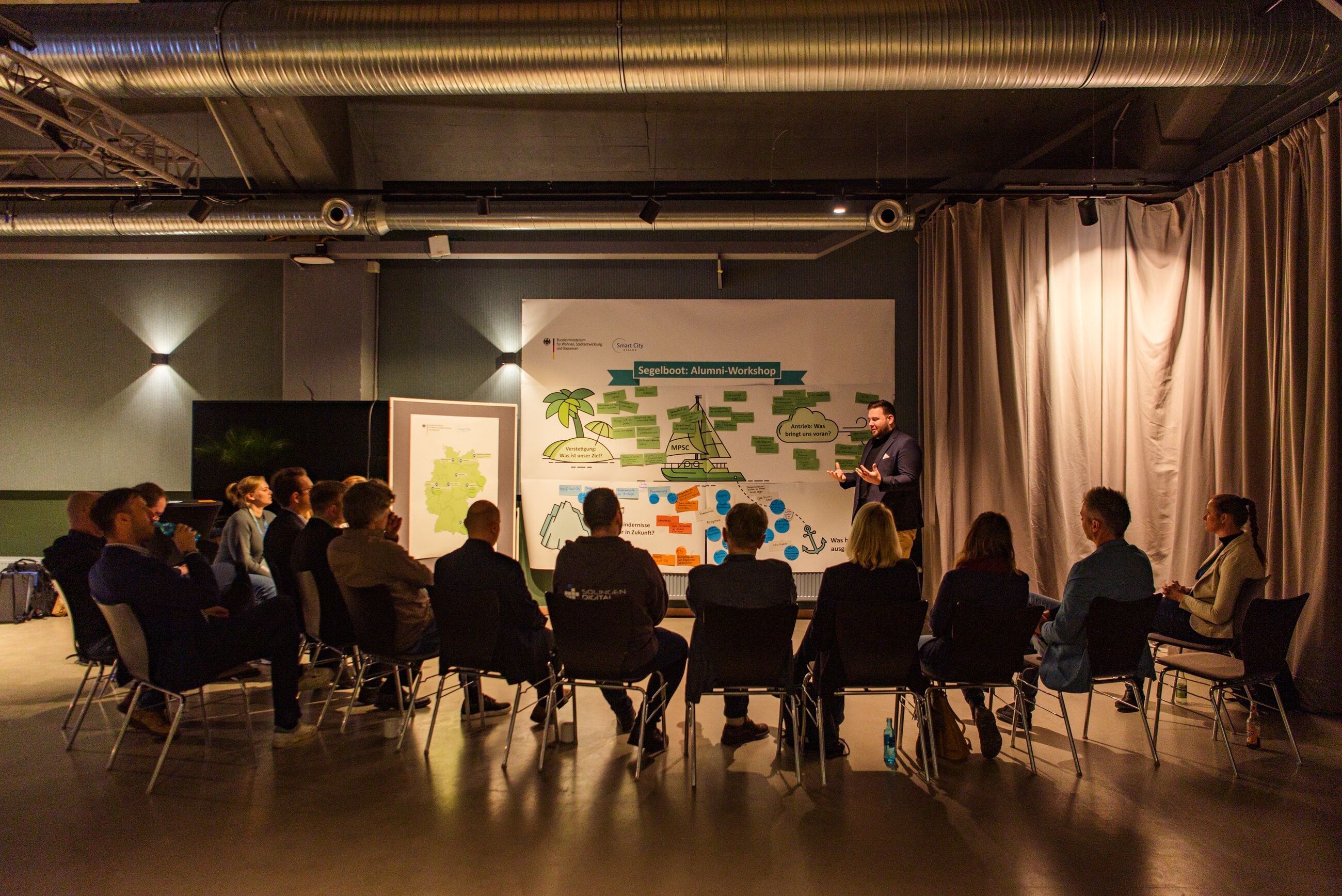 Am ersten Kongresstag zeigten die aus den Arbeits- und Entwicklungsgemeinschaften hervorgegangenen Werkstätten, wie vielfältig die Smart-City-Praxis inzwischen ist. In sechs parallelen Sessions arbeiteten die Teilnehmenden zu digitalen Beteiligungsprozessen, Social Smart City, Wirkungsorientierung, Hochwasser- und Starkregeninformationen, rechtssicheren Entwicklungspartnerschaften sowie gemeinsamen KI-Lösungen. Die Austauschformate machten deutlich, wie viel Know-how in der Community steckt – und wie offen die Kommunen bereits sind, Erfahrungen zu teilen, Herausforderungen sichtbar zu machen und miteinander an übertragbaren Lösungen zu arbeiten. Genau dieser Mix aus Fachwissen, Praxisnähe und kollegialem Lernen prägte den ersten Kongresstag und stärkte das gemeinsame Verständnis für Verstetigung.