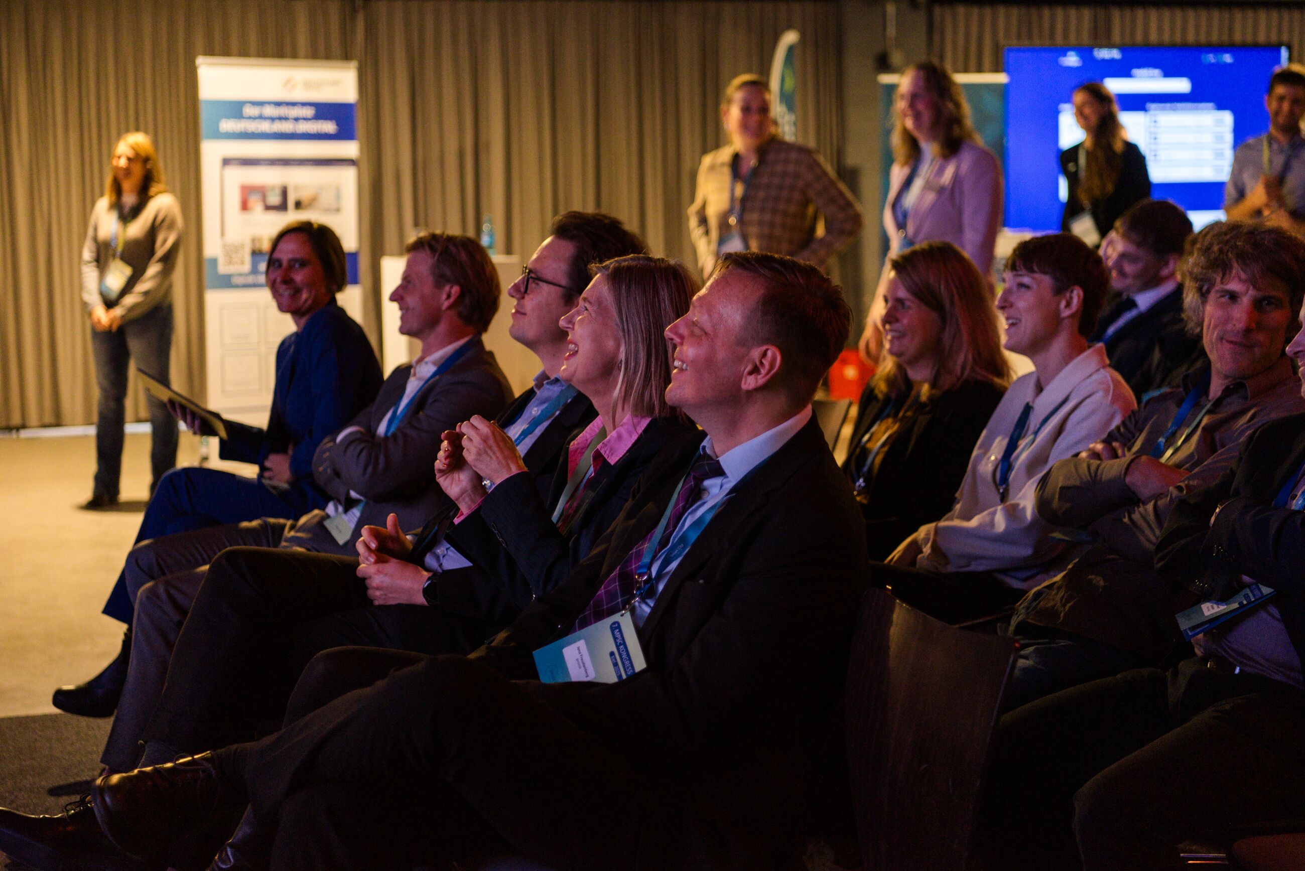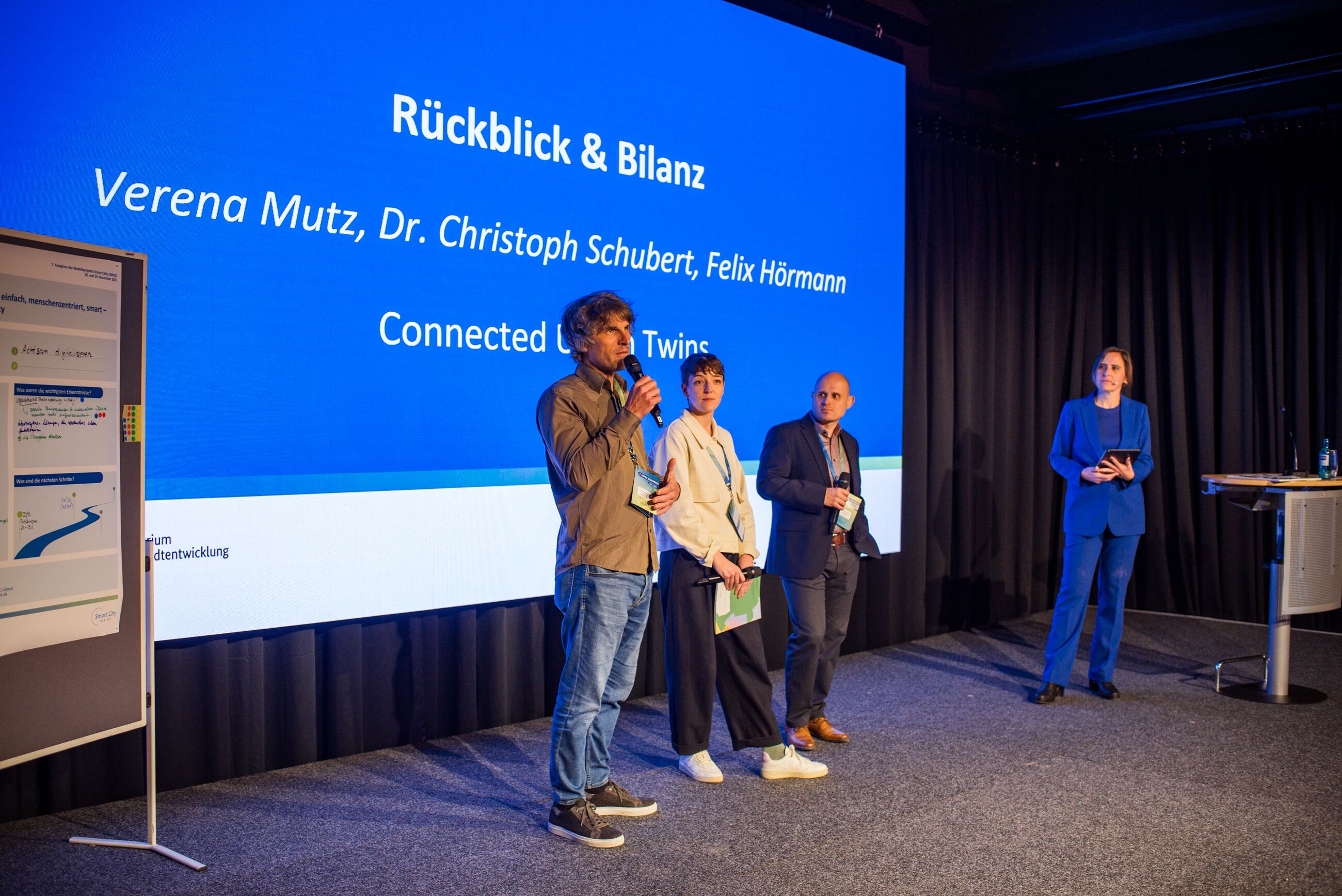 Am Nachmittag lieferten die „MPSC Gold Nuggets“ Einblicke in die Vielfalt der Modellprojekte: von Datenplattformen (Eichenzell) über digitale Mobilität (Landkreis Höxter) bis hin zu Verstetigung als kommunalem Service (Pforzheim). Beispiele wie das Amt Süderbrarup, wo das Digitalzentrum heute als ebenso relevant wie das medizinische Zentrum gilt, oder der Ansatz „Evolution statt Disruption“ beim digitalen Zwilling in Wuppertal, zeigten die Breite der Praxis. Projekte wie Connected Urban Twins präsentierten ihren Abschlussbericht und verdeutlichten eindrücklich, wie datenbasierte Planung funktioniert – und wie stark bundesweite Kooperation wirken kann.
