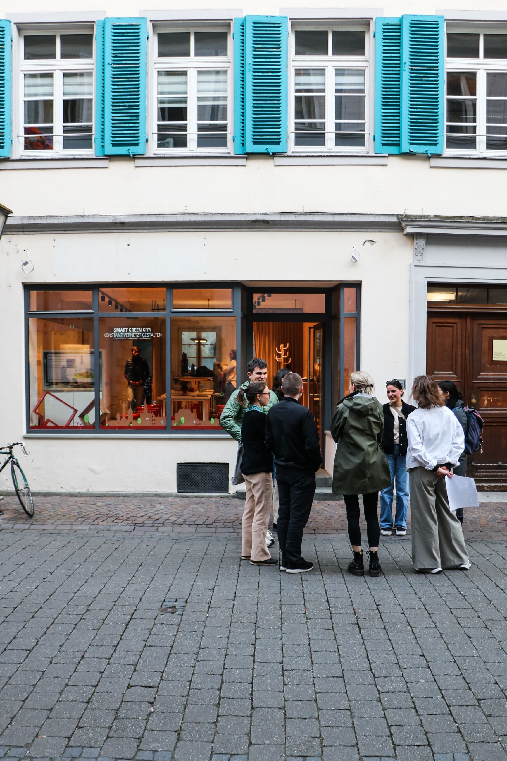 Außenansicht Fachwerkhaus mit Schaufenster mit der Aufschrift Stadtlabor