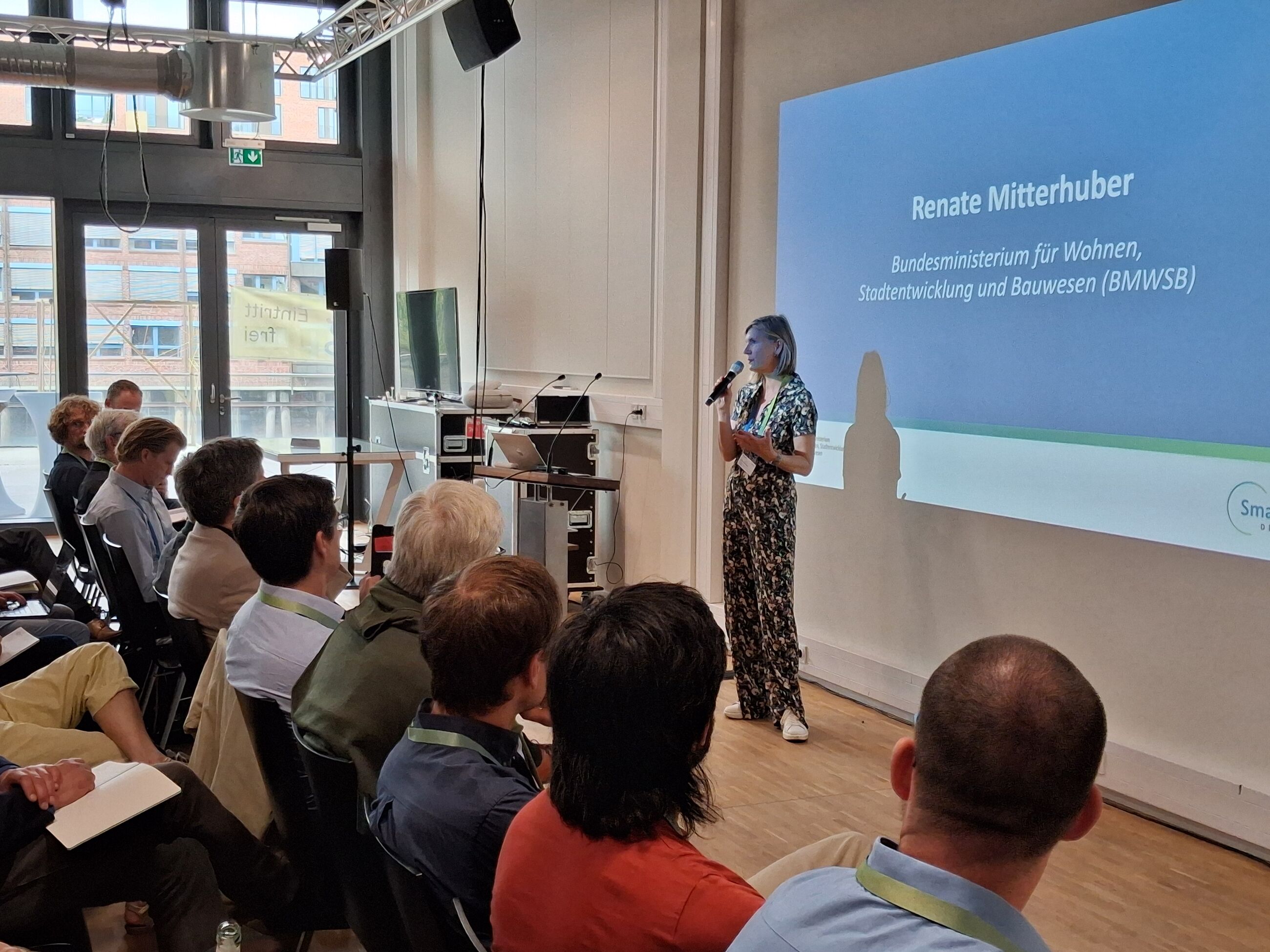 Bereits der im vergangenen Jahr verabschiedete „Stufenplan Smarte Städte und Regionen“ hat die zentrale Rolle von Wissenschaft und Forschung für eine digitale, die gemeinwohlorientierte Stadtentwicklung hervorgehoben. Auch deshalb stelle dieses Treffen einen wichtigen Schritt dar, betonte Renate Mitterhuber, Referatsleiterin „Smarte Städte und Regionen“ im BMWSB, in ihrem Grußwort.