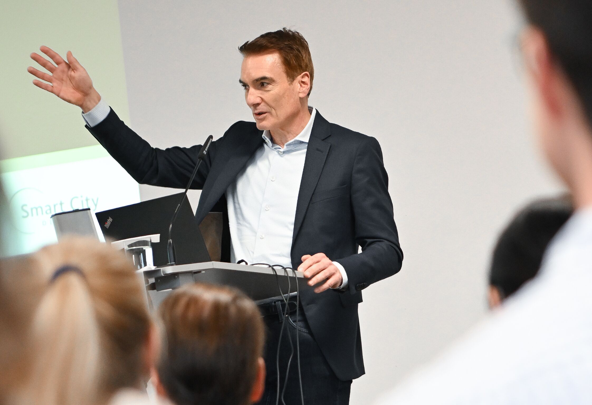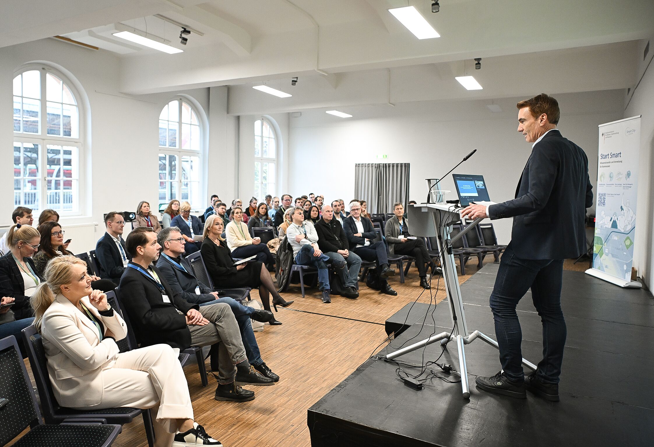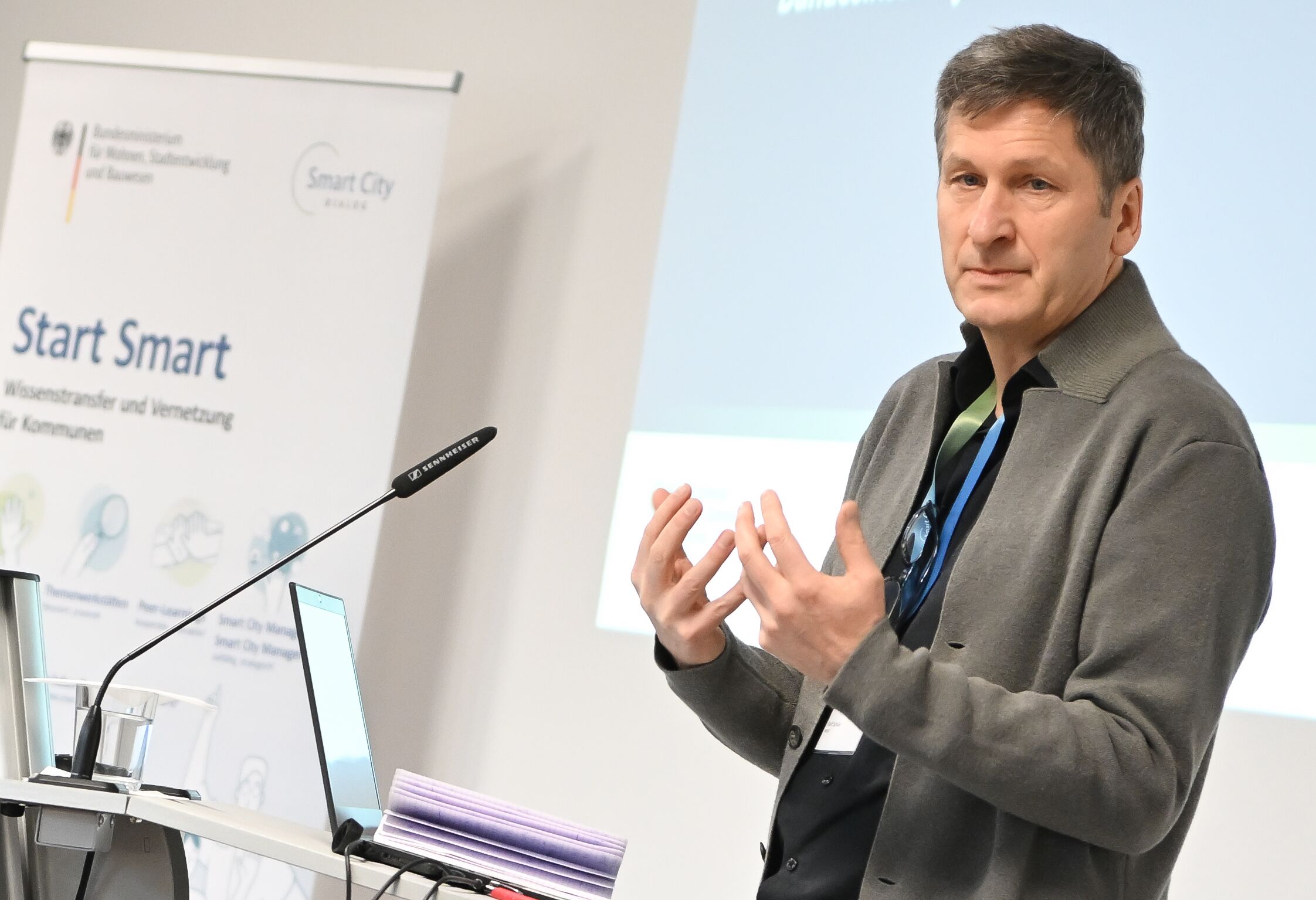 Michael Huch, Leiter der KTS, skizzierte die Herausforderungen, vor denen Kommunen stehen: So erfordere unter anderem der demografische Wandel innovative Lösungen. Er verwies zugleich darauf, dass von den Erfahrungen und Erkenntnissen aus dem Förderprogramm Modellprojekte Smart Cities bereits heute viele Kommunen in Deutschland profitieren würden.