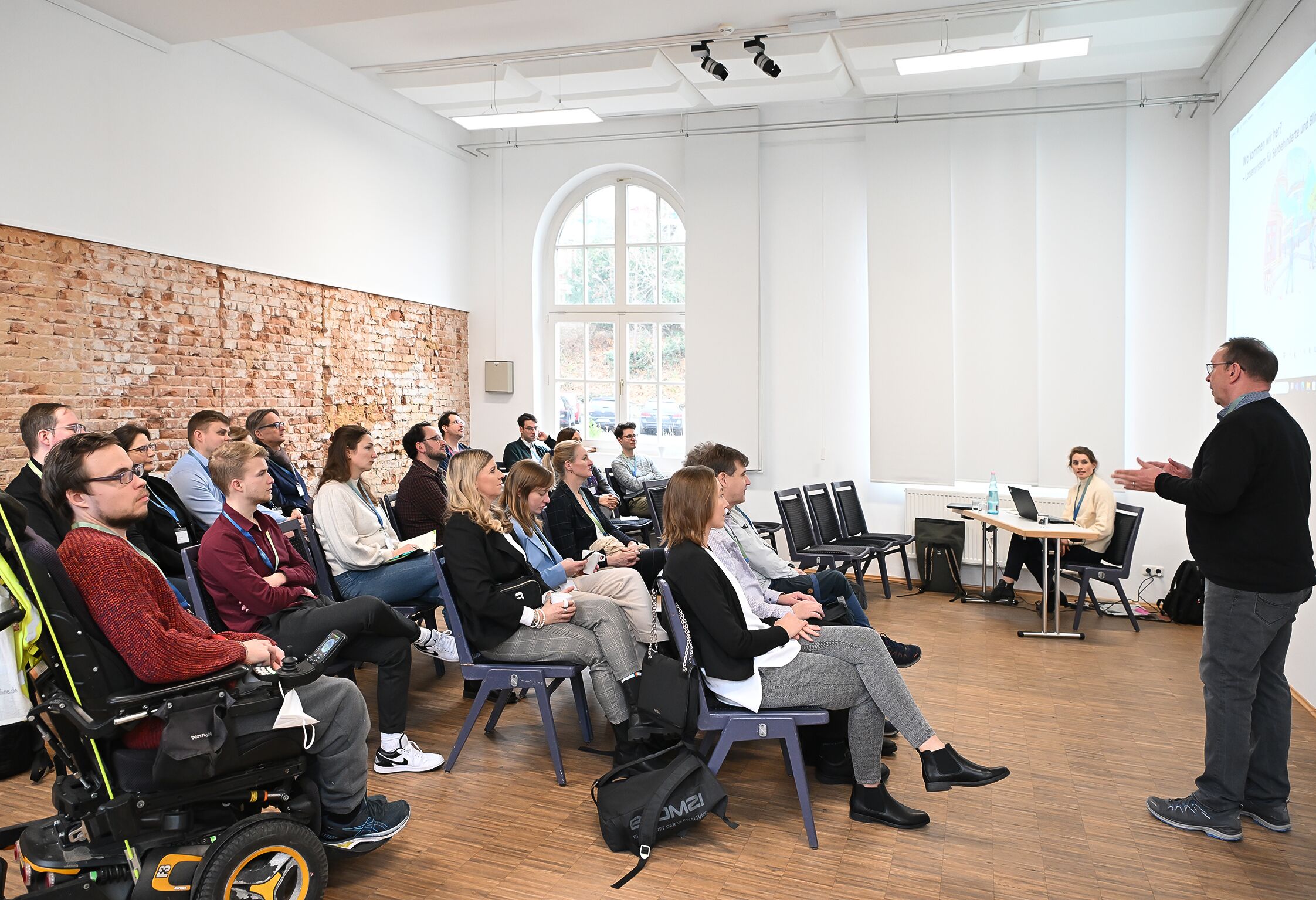 „Social smart“, umweltgerecht, zukunftssicher – Für das MPSC „Smart Kassel“ gehören diese Begriffe untrennbar zusammen. Das hob Norbert Wett, Dezernent der Stadt Kassel für Bürgerangelegenheiten, Soziales, Digitalisierung und Tourismus, in seiner Eröffnungsrede hervor: In Kassel werde Digitalisierung als Instrument gesehen, um Barrieren abbauen und Teilhabe fördern zu können. Es gehe darum, Menschen an die Hand zu nehmen, ihnen Angebote zu geben, digitale Lernorte und echte Unterstützung und Beteiligung zu ermöglichen. Auch Ralf Schüle, Forschungsreferent Digitale Stadt im Bundesinstitut für Bau-, Stadt- und Raumforschung (BBSR), betonte in seinem Grußwort, wie gut das Thema zu Kassel passe, einer Stadt, die das Konzept „Social Smart“ schon früh in ihrer Smart-City-Strategie verankert habe.