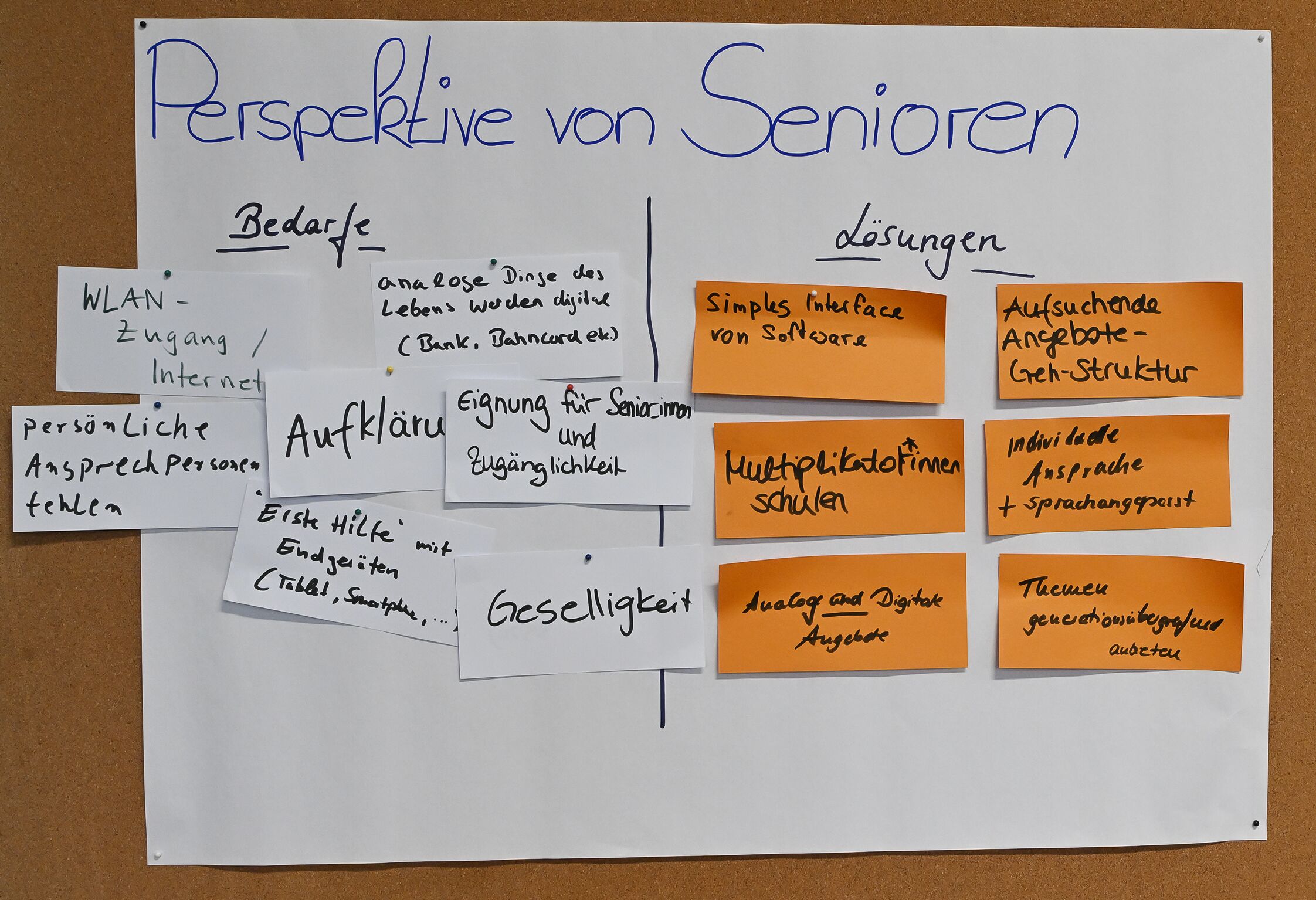 • Innovation und Kooperation von Teams und Kommunen: Keine Top-Down-Ansätze. Silos aufbrechen. Verwaltung mitnehmen. Kontakte nutzen. Sich trauen, für breite Beteiligung der Bevölkerungsgruppen neue Wege zu gehen, zum Beispiel indem die Teams „rausgehen und ihre Angebote bewusst auf die Zielgruppen ausrichten (Ü60, Jugendliche oder soziale Brennpunkte), Crowdfunding nutzen oder ungewöhnliche, analoge oder mobile Anlauforte schaffen. Beispiel: Das „Smart Age Mobil“ oder der „Digitale Wegeweiser für Menschen mit Hilfebedarf“ in Kassel.