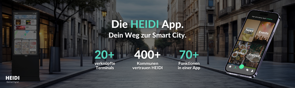 HEIDI – Heimat Digital – ist eine modulare kommunale App, mit der Städte und Gemeinden digitale Services, Informationen und Beteiligungsangebote zentral für ihre Bürgerinnen und Bürger bereitstellen können.