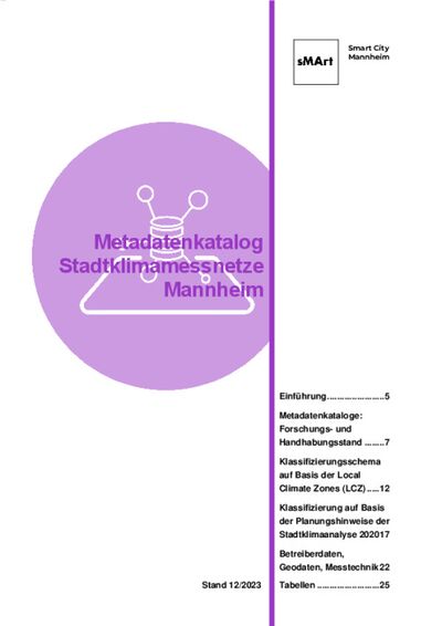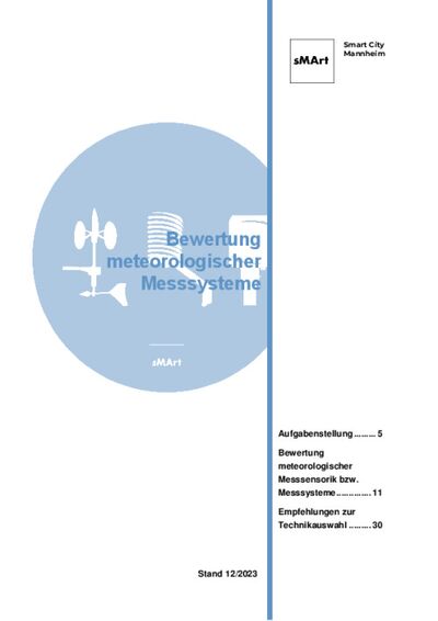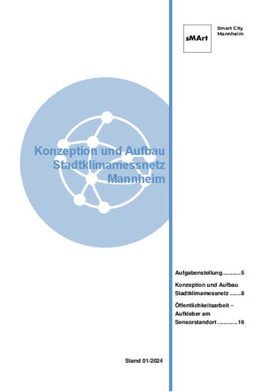 Das Konzept „Konzeption und Aufbau Stadtklimamessnetz Mannheim“ bezieht sich hauptsächlich auf die Erhebung von Lufttemperatur, Luftfeuchtigkeit, Windrichtung und Windgeschwindigkeit sowie Globalstrahlung. Die Erhebung bzw. Einbindung von Niederschlagsdaten wird in einer eigenen „Konzeption und Aufbau Niederschlagsmessnetz Mannheim“ beschrieben. Parallel zum vorliegenden Dokument wurden die technischen Bewertungen meteorologischer Messtechnik und Vorgaben zur Erhebung relevanter und belastbarer Klimadaten in dem Dokument „Bewertung meteorologischer Messsysteme“ (12/2023) zusammengefasst. Die Beschreibung der Klimastandorte bezüglich ihrer räumlichen wie auch technischen Aspekte erfolgt parallel mit dem Aufbaufortschritt des Klimamessnetzes in einem „Metadatenkatalog Stadtklimamessnetze Mannheim