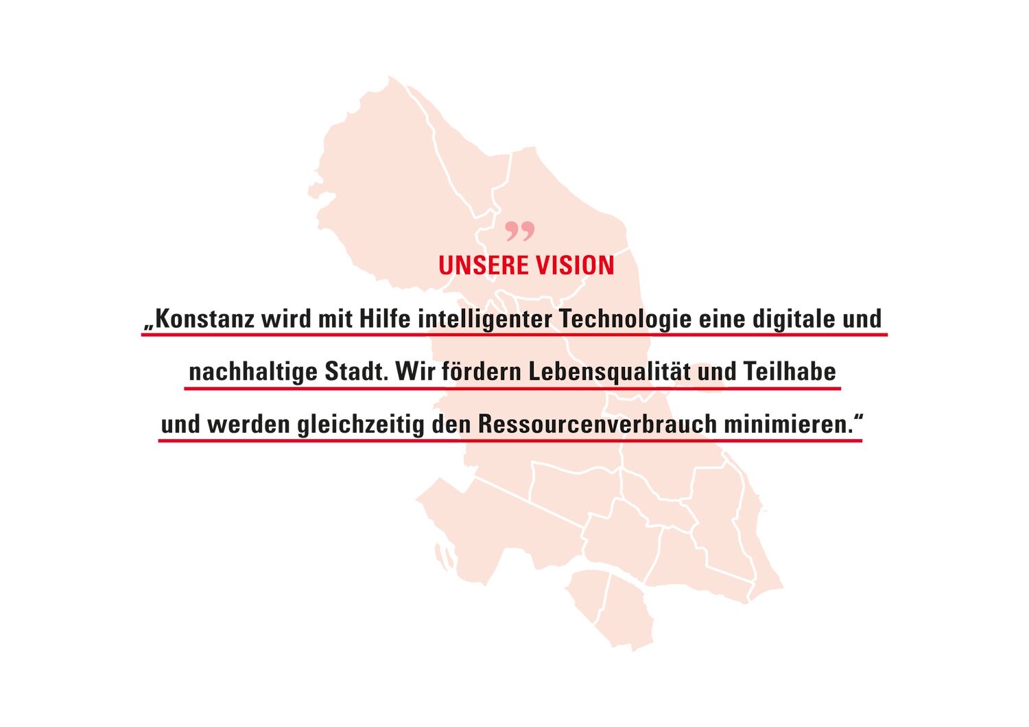 Konstanz wird mit Hilfe intelligenter Technologien eine digitale und nachhaltige Stadt. Wir fördern Lebensqualität sowie Teilhabe und werden gleichzeitig den Ressourcenverbrauch minimieren.