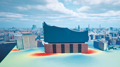Die Maßnahme ermöglicht es Stadtplanerinnen und -planern, Wind- und Verkehrslärmsimulationen für Bauvorhaben direkt im webbasierten Masterportal durchzuführen. Durch die niedrigschwellige Integration von Simulationswerkzeugen können Umweltauswirkungen bereits in frühen Planungsphasen bewertet werden, was zur Planungsbeschleunigung beiträgt und fundierte Entscheidungen über Gebäudeverortung und Schutzmaßnahmen ermöglicht. Nutzerinnen und Nutzer zeichnen 2D-Geometrien ihrer Planungsszenarien im Masterportal und definieren Simulationsparameter wie Höhenangaben. Die Steuerung erfolgt über den neu entwickelten Scenario Explorer, während die Berechnungen auf externen Modellservern über die Urban Model Platform ausgeführt werden. Die Ergebnisse werden in 2D im Kontext des Planungsgebietes mit Bestandsbebauung und Straßen visualisiert. Für Verkehrslärmsimuationen wurde NoiseModelling v4 aufgesetzt, eine Open-Source-Software die den CNOSSOS-EU-Standard implementiert. Integriert wurden Gebäudedaten sowie Straßendaten des Hamburger Verkehrsmodells mit Verkehrsmengen nach Fahrzeugklassen sowie Straßendeckschichten aus der Urban Data Platform, die auf die Straßengeometrie homogenisiert wurden.
