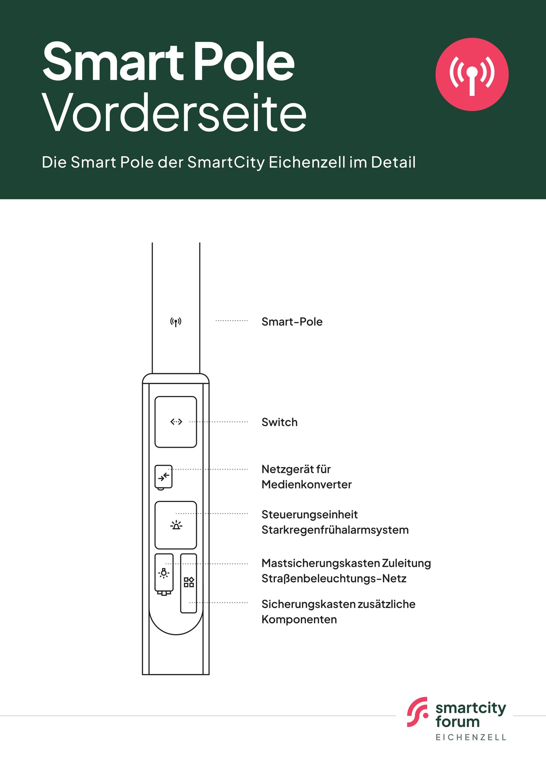 Mit den Smart Poles etabliert Eichenzell ein in Deutschland bisher einmaliges System, bei dem die Straßenlaternen als Antennen für Sensorik genutzt werden. Die intelligente Straßenbeleuchtung wird dadurch zu dauerhaft nutzbaren, zentralen Bausteinen kommunaler, digitaler Infrastruktur und eröffnet eine Vielzahl an modularen Anschlussmöglichkeiten für zukünftige IoT-Anwendungen wie beispielsweise Sensoren für Wetterdaten, Gateways für das LoRaWAN der Gemeinde oder ein Außendisplay für Informationen in den jeweiligen Ortsteilen.