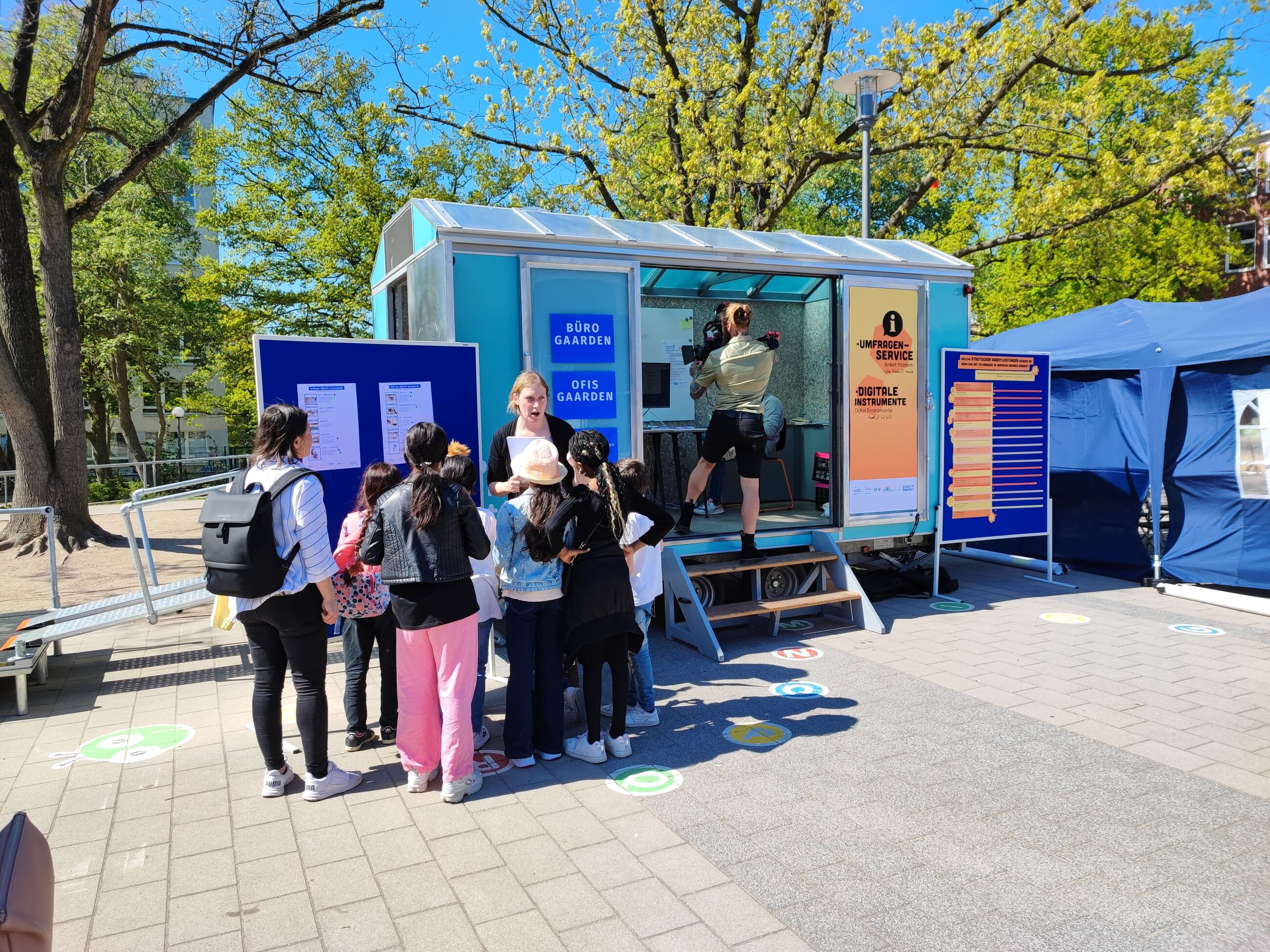 Das Tiny Rathaus wird in den einzelnen Stadtteilen an stark frequentierten und wichtigen Orten wie den Standorten der Ortsbeiräte oder Stadtteilbüros aufgestellt, sodass es für die Menschen gut erreichbar ist.